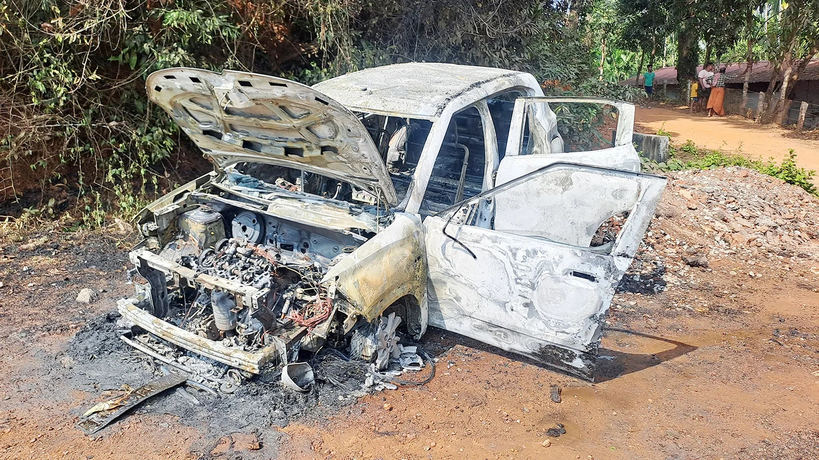 ಚಲಿಸುತ್ತಿದ್ದ ಕಾರಿಗೆ ಬೆಂಕಿ: ಕ್ಷಣಾರ್ಧದಲ್ಲಿ ಪಾರಾದ ಚಾಲಕ